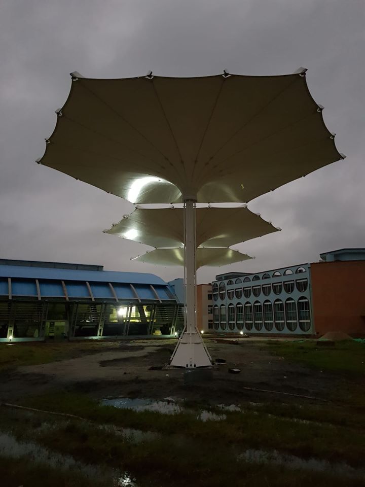 Für die Huppertz AG aus Belgien durften wir die Membrane für diese wunderschönen Trichterschirme konfektionieren. Die Membrane besteht aus PVC-beschichtetem Polyestergewebe mit einer zusätzlicher Fluorlack-Beschichtung.